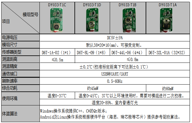 歐姆龍測溫模組是基于歐姆龍紅外高精度溫度傳感器以及先進(jìn)軟件算法的非接觸式測溫模組,款式多樣,有單點(diǎn)測溫型,陣列測溫型,以及熱成像測溫型等等,通過算法可實(shí)現(xiàn)測溫精度±0.2℃,具備數(shù)據(jù)實(shí)時(shí)輸出顯示,可通過USB接口直接連接電腦和手機(jī),配合上位機(jī)軟件或者手機(jī)APP程序,使用十分方便。