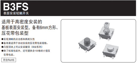 這類美容儀器產(chǎn)品都會有按鍵,當中就有應(yīng)用到歐姆龍輕觸開關(guān)型號:B3FS-1002P,實現(xiàn)清晰點擊感和耐久性;我們可以看下具體參數(shù):