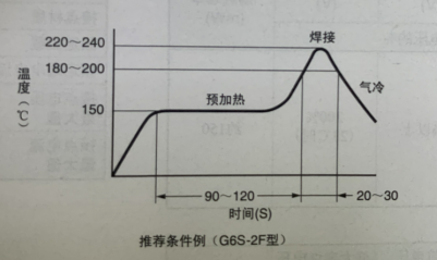 焊接推薦條件雖然顯示出了印刷電路板面的溫度曲線,但是各繼電器的條件可能會(huì)有所不同,因此請(qǐng)?jiān)趯?duì)各規(guī)格加以確認(rèn)的基礎(chǔ)上進(jìn)行使用,在焊接之后,請(qǐng)勿立即浸漬到清洗液等冷卻液中,會(huì)損傷繼電器的密封性,如下圖所示: