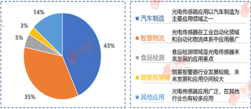 光電傳感器行業(yè)鏈下游主要涉及汽車行業(yè)、智慧物流行業(yè)、食品檢測行業(yè)、煙霧報警器如圖1)。