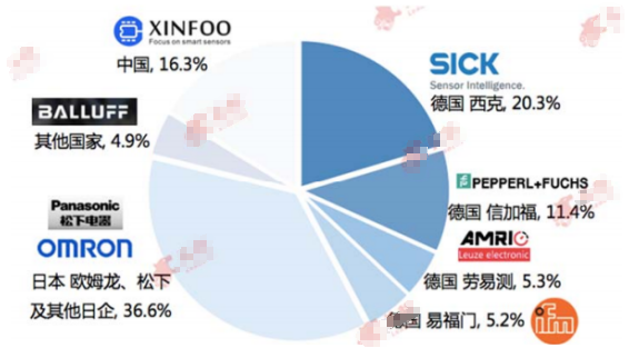 中國光電傳感器企業(yè)主要分布在長江三角洲地區(qū),以上海、無錫、南京為中心,形成了光電、熱敏、圖像、溫度等較為完備的傳感器生產(chǎn)和產(chǎn)業(yè)配套體系,產(chǎn)品以低端傳感器為主。中國是光電傳感器制造大國,本土企業(yè)光電傳感器核心技術(shù)掌握程度低。本土企業(yè)以作坊式和 OEM 生產(chǎn)為主要生產(chǎn)模式,生產(chǎn)產(chǎn)品多為中低端產(chǎn)品。中低端產(chǎn)品生產(chǎn)企業(yè)以成本為主要優(yōu)勢,導致中低端產(chǎn)品價格競爭激烈??鐕髽I(yè)則掌握核心制造技術(shù),加之檢測工藝嚴謹,產(chǎn)品質(zhì)量高于本土產(chǎn)品。激光紅外傳感器等高端傳感器的核心技術(shù)的掌握賦予了德國和日本企業(yè)高競爭力,導致高端傳感器市場份額主要由德國和日本企業(yè)占據(jù).(如圖2)