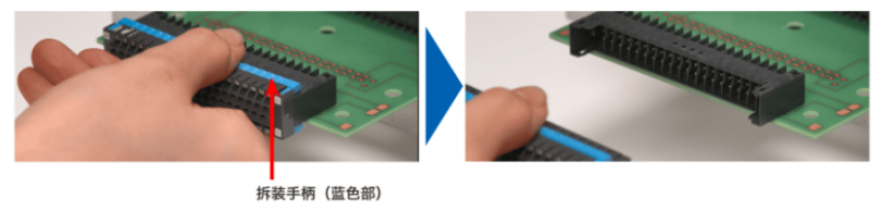 特征2單手操作:通過沿連接器手柄方向安裝拆裝手柄,可輕松單手插拔連接器。