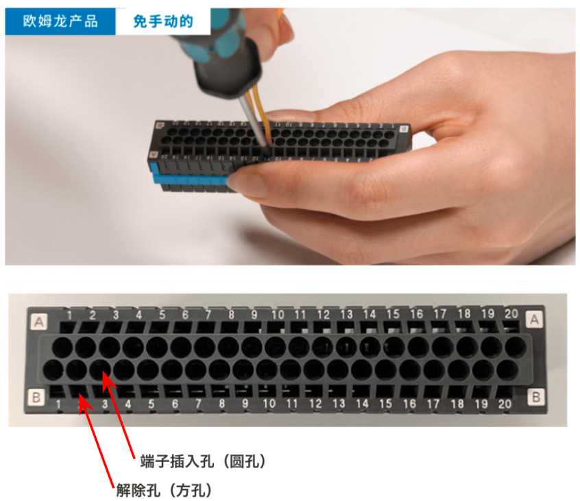 --推入型端子臺采用推入方式,只需插入電線即可連接。