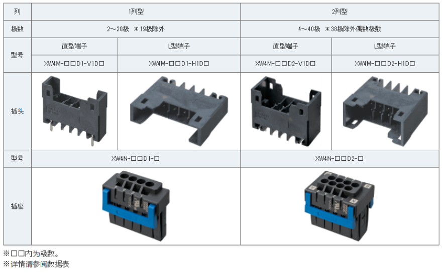 1、XW4M/XW4N系列是一款推入型端子臺基板用連接器。