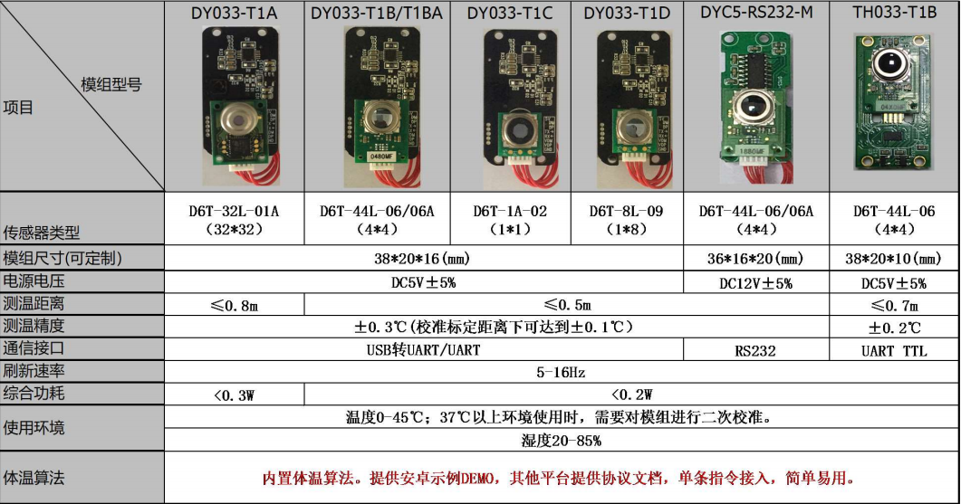 我們同時(shí)也可以給您提供一整套的測溫解決方案!我們可以根據(jù)客戶測溫需求,搭載1*1,1*8, 4*4,32*32歐姆龍測溫傳感器,實(shí)現(xiàn)檢測距離0.3-0.8米測溫,測溫精度可以達(dá)到±0.3℃(校準(zhǔn)標(biāo)定距離下可達(dá)到±0.1℃)。也可以滿足客戶的多種串口通訊方式(1)USB轉(zhuǎn)UART/UART;(2) RS232 ;(3) UART TTL。模塊資料如下: