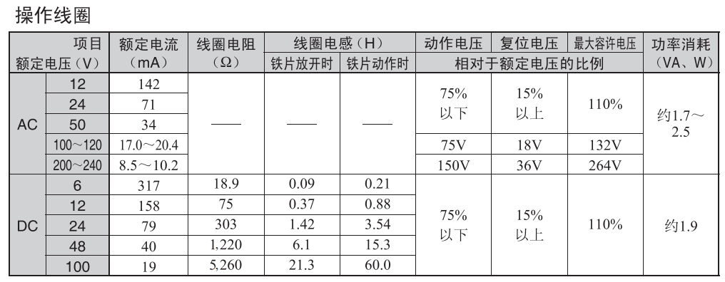 用1個線圈可以覆蓋AC100V系列的AC100-120V 50/60Hz及AC200V系列的AC200-240V 50/60Hz,實現(xiàn)了寬范圍線圈;