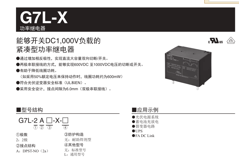這款可應用于光伏電源系統(tǒng)的G7L-X功率繼電器,還可替代傳統(tǒng)繼電器為光伏行業(yè)以外的各種行業(yè)