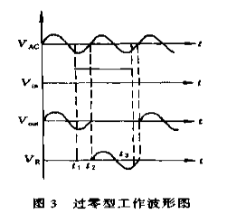 由于觸發(fā)信號方式不同,AC—SSR還分為過零型觸發(fā)(Z型)和非過零型或隨機(jī)型(P型)觸發(fā)兩種,如圖為其工作波形圖??梢娺^零型和非過零型之間的區(qū)別主要在于負(fù)載交流電流導(dǎo)通的條件。過零型在輸入信號Vin施加的t1時(shí)刻,由于此時(shí)電源電壓處在非過零區(qū),其輸出端不導(dǎo)通,只有當(dāng)電源電壓到達(dá)過零區(qū)t2時(shí),輸出端負(fù)載中才有電流流過。而非過零型在輸入信號Vin施加的t1時(shí)刻,不管電源電壓處在什么狀態(tài),負(fù)載立刻導(dǎo)通。這兩種類型的固體繼電器關(guān)斷條件則相同。