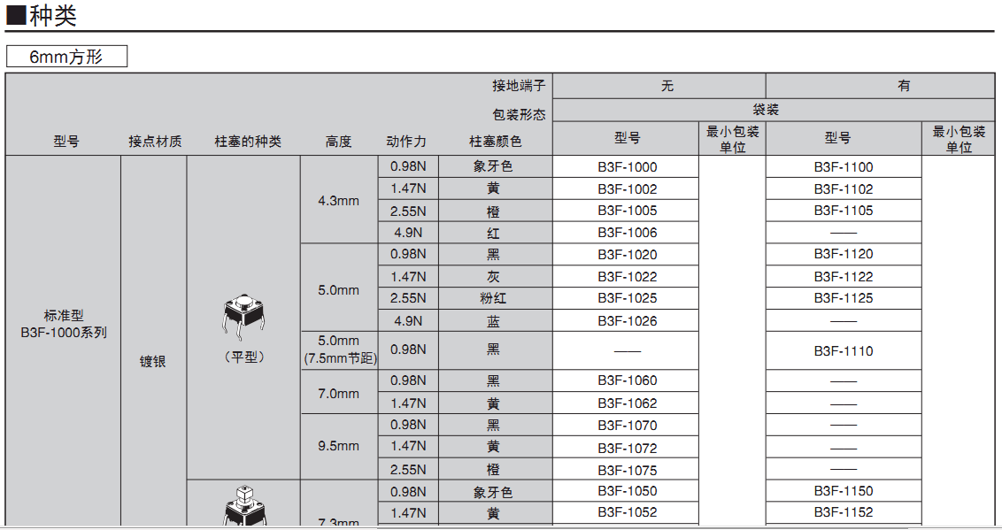 6mm方形、12mm方形具有橫向操作、高負(fù)載、鍍金型等全系列產(chǎn)品