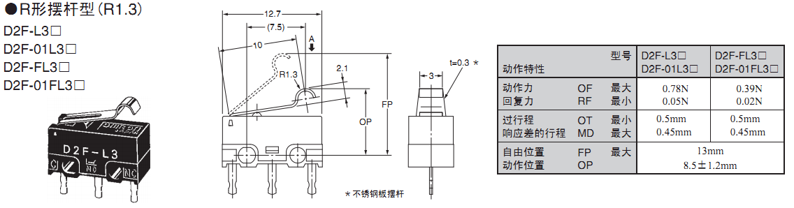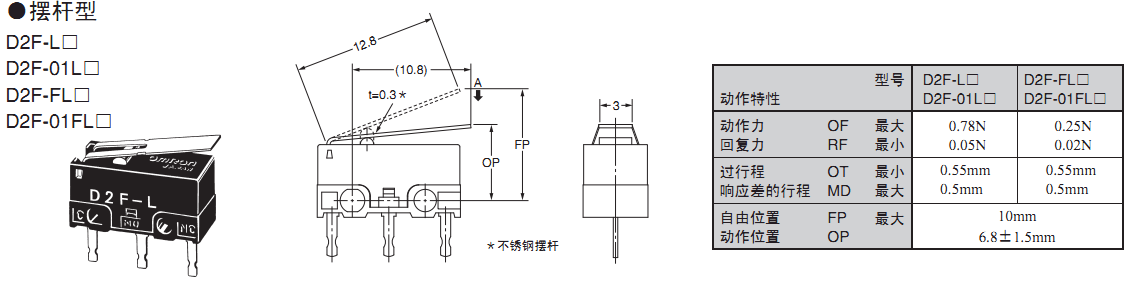 歐姆龍微動開關(guān),D2F-01FL2-D-E,歐姆龍微動開關(guān)D2F