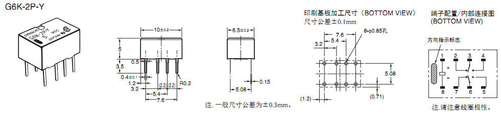 高5.2mm×寬6.5mm×長10mm的超小型,對應(yīng)高密度封裝(G6K(U)-2F(-Y)型)。