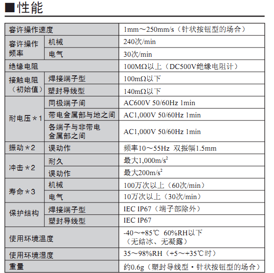 保護(hù)結(jié)構(gòu)符合JIS的防浸型、IEC的IP67 (但端子部分除外)