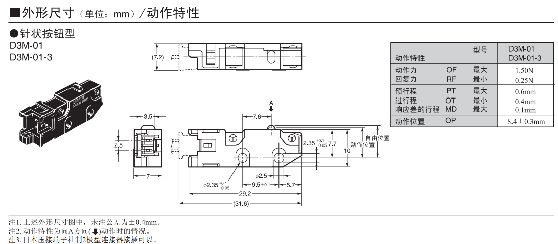 歐姆龍微動開關,D3M-01K1,歐姆龍微動開關D3M