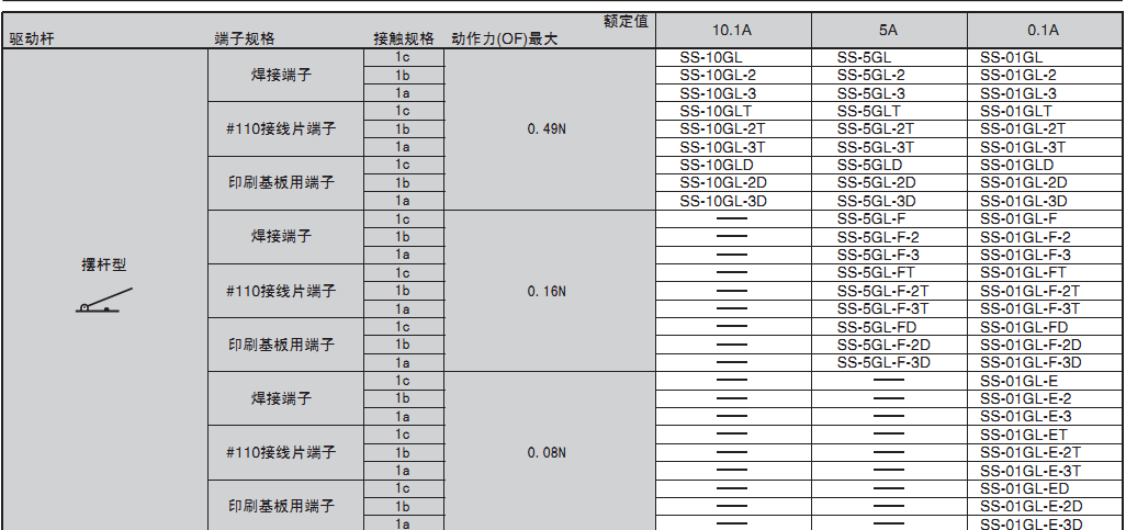 備有0.1A~10.1A型的各個(gè)品種,產(chǎn)品規(guī)格齊全,是歐姆龍暢銷(xiāo)的微動(dòng)開(kāi)關(guān)。