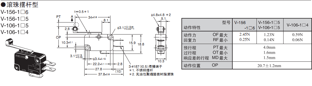 歐姆龍微動開關(guān), V-156-1C25,歐姆龍微動開關(guān)V-15