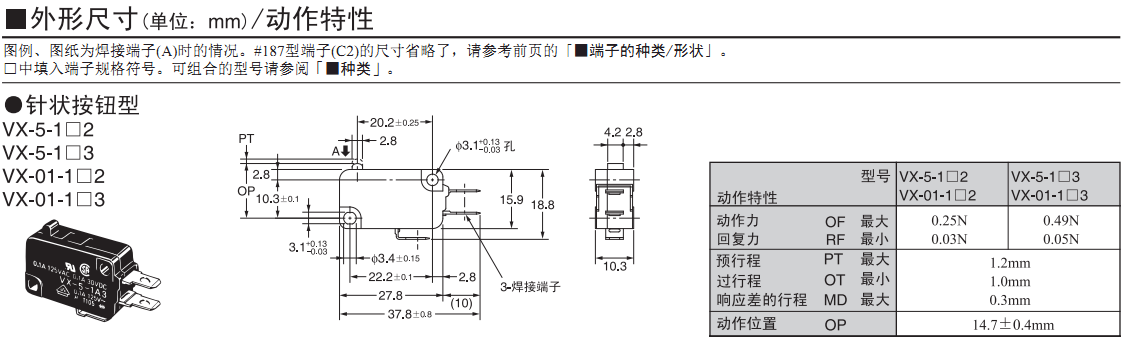 歐姆龍微動開關(guān),VX-5-1A2,歐姆龍微動開關(guān)VX
