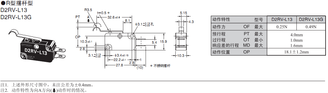 歐姆龍微動(dòng)開(kāi)關(guān), D2RV-L13,歐姆龍微動(dòng)開(kāi)關(guān)D2RV