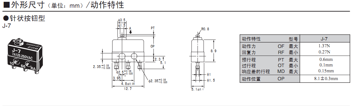 歐姆龍微動開關,J-7,歐姆龍微動開關J