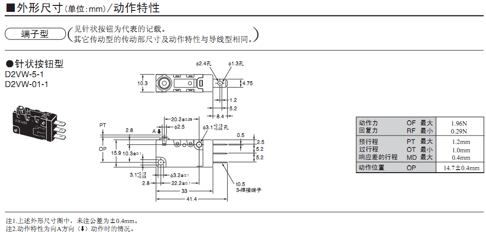 D2VW 密封型小型基本開關(guān)