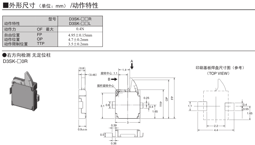 歐姆龍檢測開關,D3SK-A0R,歐姆龍檢測開關D3SK
