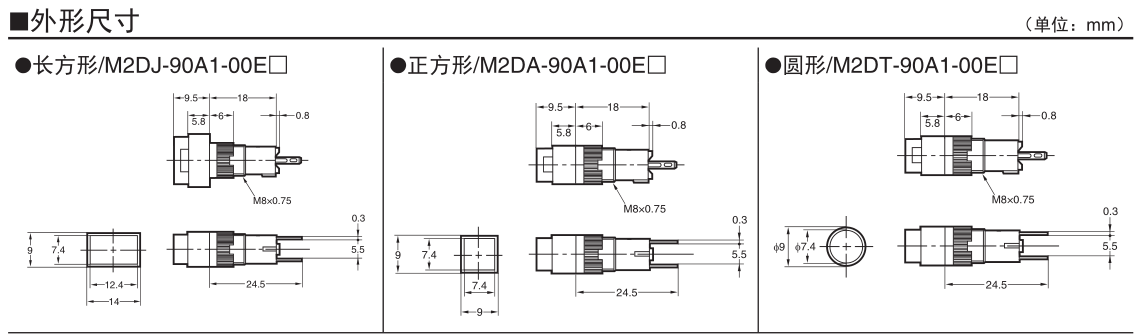 ● 與按鈕開(kāi)關(guān)A3D系列是同一類型。