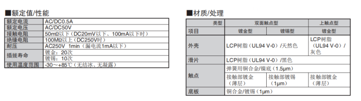 接點(diǎn)構(gòu)造備有雙面觸點(diǎn)型和上觸點(diǎn)型兩種。 (上接點(diǎn)型只有0.5mm間距)