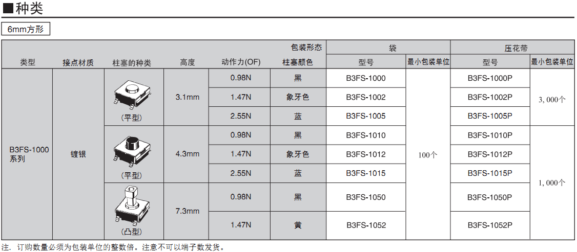 基板表面安裝型,備有6mm方形、壓花帶包裝型