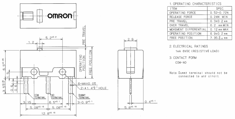 D2FC-F-7N, 克力為:60+/-15G,壽命為500萬次;