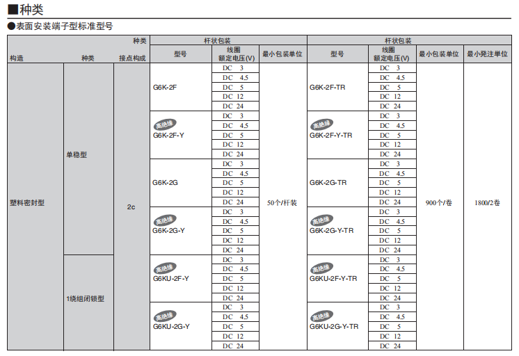 •  高5.2mm×寬6.5mm×長(zhǎng)10mm的超小型,對(duì)應(yīng)高密度封裝(G6K(U)-2F(-Y)型)