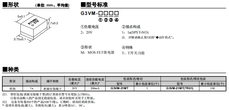 • G3VM-□MT MOS FET繼電器模塊