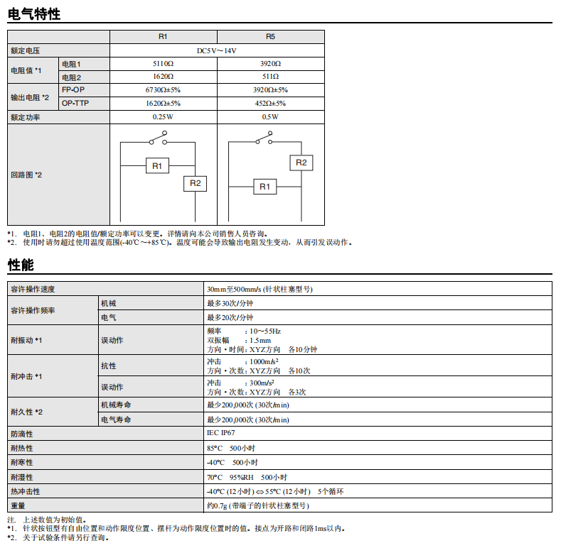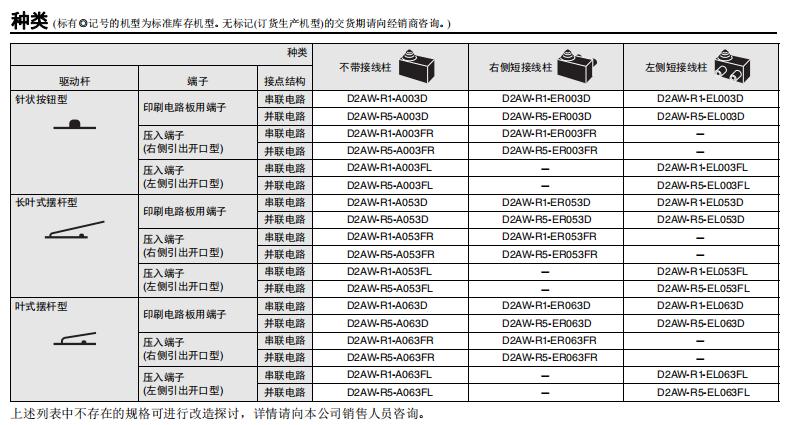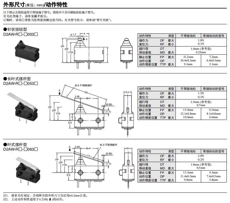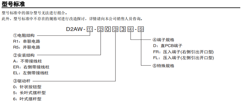 D2AW-R 電阻內置型微動開關