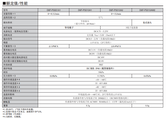 • D6F-P 流量傳感器0~1L/min
