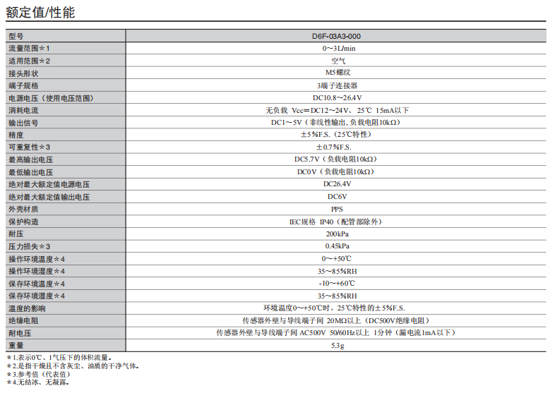 • D6F-A3小型流量傳感器0~3L/min